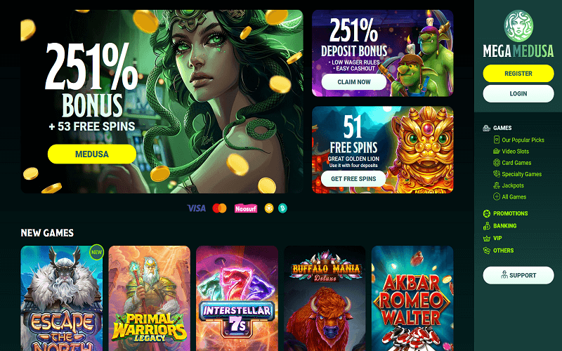 What sets Mega Medusa Casino apart from other online casinos? Let's dive into the reasons why you should choose Mega Medusa Casino for your next gaming adventure. At Mega Medusa Casino, you'll never run out of options when it comes to games. Whether you're a fan of classic slots, table games, or live dealer games, Mega Medusa Casino review plus software platform. With top-notch graphics and engaging gameplay, you'll be entertained for hours on end. Who doesn't love a good bonus? At Mega Medusa Casino, new players are welcomed with a generous sign-up bonus, and loyal players are rewarded with ongoing promotions and incentives.