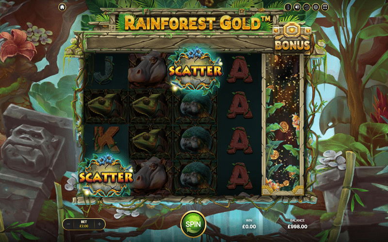 o start your adventure in the rainforest, simply set your bet amount and click spin to watch the reels come to life. Keep an eye out for the wild symbols, which can substitute for other symbols to create winning combinations. If you land three or more scatter symbols, you'll trigger the bonus round and unlock free spins with the potential for lucrative multipliers. With its user-friendly interface and straightforward gameplay mechanics, Rainforest Gold is the perfect choice for players looking for a fun and rewarding online slot experience. So, why not give it a spin and see if you can uncover the hidden treasures of the rainforest?